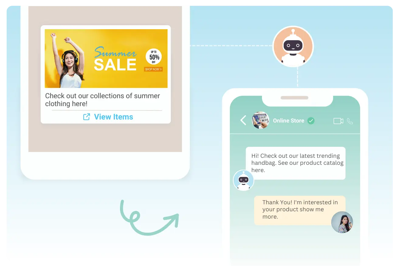Leverage the API to deliver compelling conversational flows with interactive CTAs, dynamic product lists, rich media and more.
