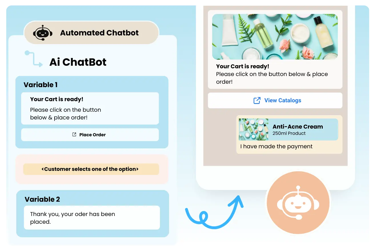 Automate notifications for orders, deliveries, payments, abandoned cart reminders, and more on WhatsApp.
